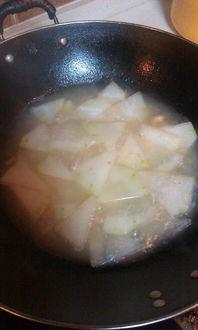 2. 下瓜:水开后,将切好的瓜块放入锅中,转小火慢慢煮。